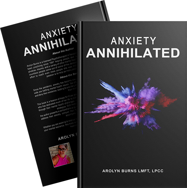 Arolyn Burns is a licensed therapist who’s been working with anxiety, trauma, and chronic pain since 1997. She spent fifteen years with LA County investigating child abuse, working with crime victims, domestic violence survivors, and veterans struggling with deployment stress. She’s also worked with professional athletes battling performance anxiety and helped Olympic competitors win medals.